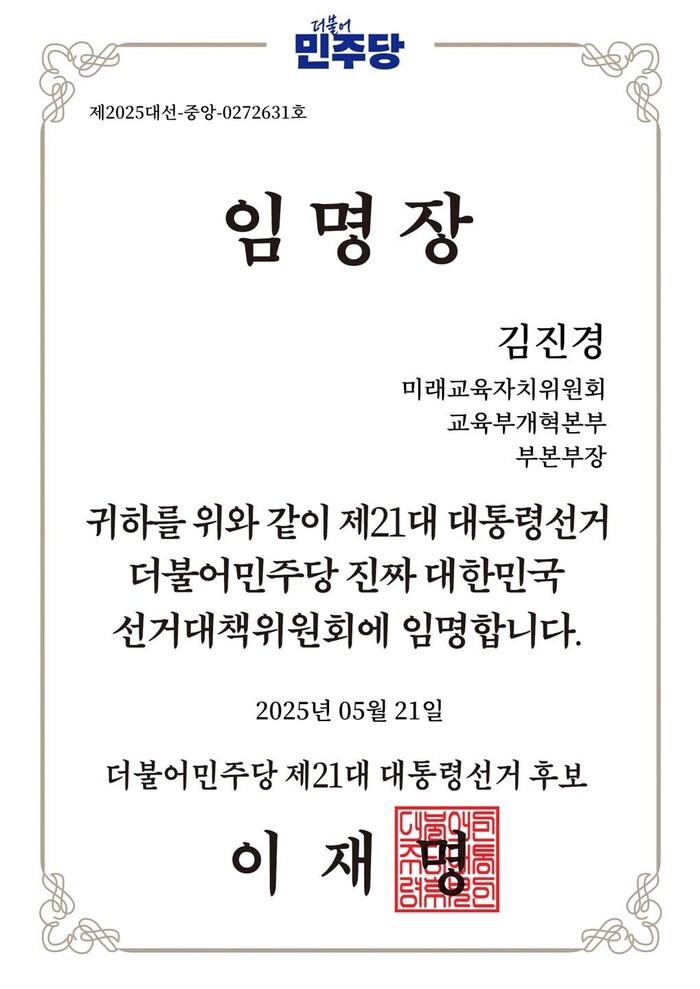 이어 이재명 후보의 승리는 곧 국민이 주인인 나라, 내일이 더 나은 나라를 향한 희망의 증거가 될 것이라며, 시민과 함께, 현장과 함께 반드시 승리로 나아가겠다고 덧붙였다.
