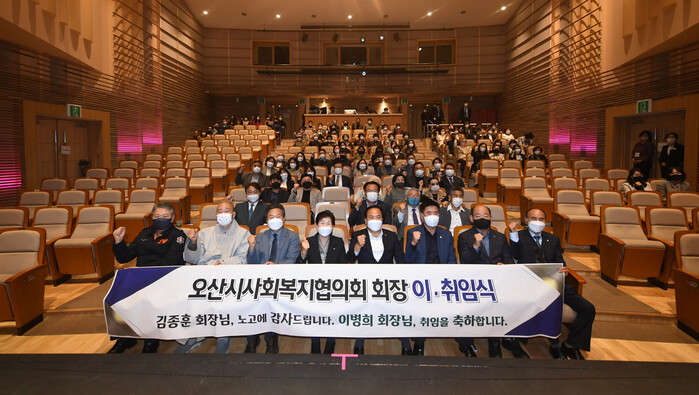 오산시사회복지협의회는 지난 21일 오산문화예술회관 소공연장에서 오산시사회복지협의회장 이·취임식을 개최했다고 밝혔다.