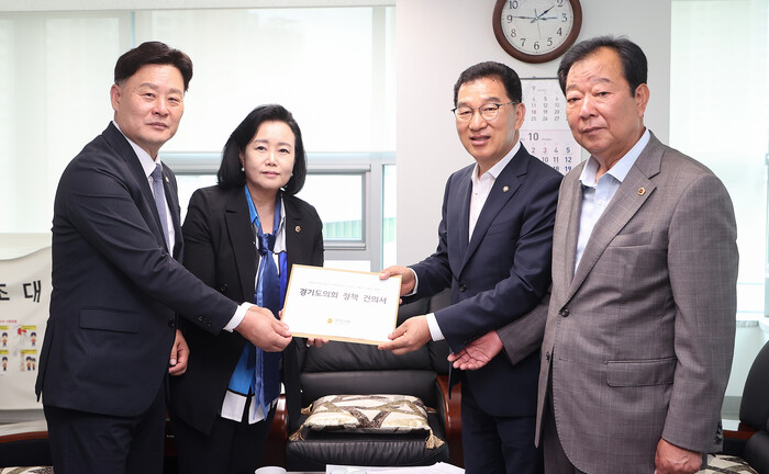 경기도의회 정윤경 부의장(군포1)과 더불어민주당 최종현(수원7) 대표의원, 국민의힘 임상오(동두천2) 안전행정위원장은 14일 실시된 ‘2024년도 행정안전위원회(위원장 신정훈) 경기도 국정감사’와 관련하여 지방의회의 기능과 역할 강화를 위한 제도개선 내용이 담겨있는 건의서를 행정안전위원장에게 전달하였다.