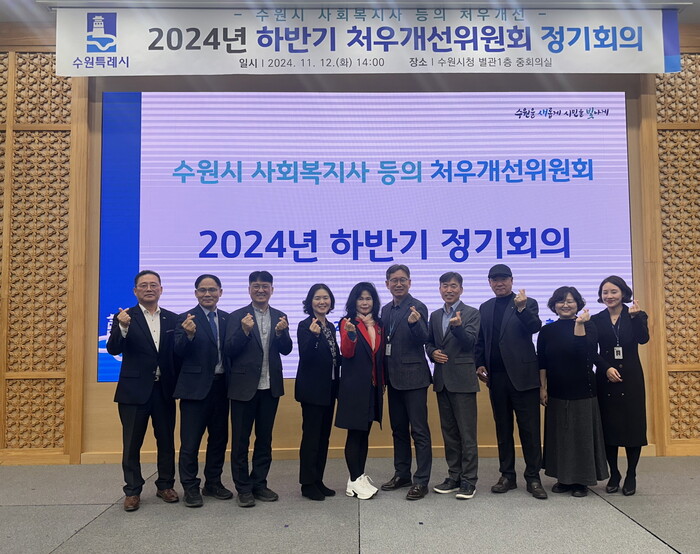 수원시(시장 이재준)가 12일 시청 중회의실에서 ‘사회복지사 등의 처우개선위원회’ 하반기 정기회의를 열고, 사업 추진 결과를 공유했다.