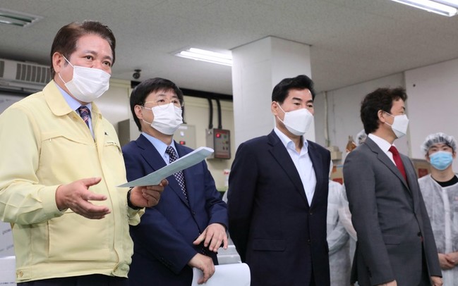 [안양=로컬라이프] 송준형 기자 = 최대호 안양시장을 비롯해 한대희 군포시장, 김상돈 의왕시장, 김종천 과천시장 등 안양권 4개단체장이 26일 안양시 호계2동에 소재한 경인푸드를 방문, “친환경 꾸러미 지원사업”추진 상황을 점검하고 관계자를 격려했다.