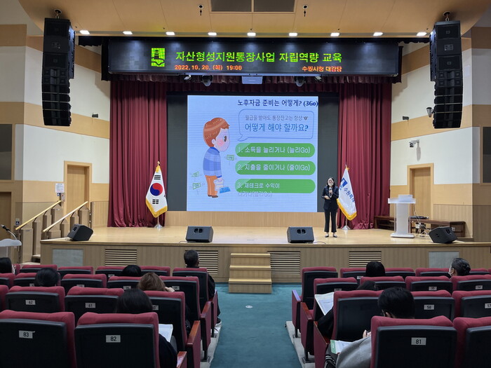 수원시가 20일 시청 대강당에서 ‘2022년 자산형성지원사업 가입자 자립 역량 교육’을 진행했다.