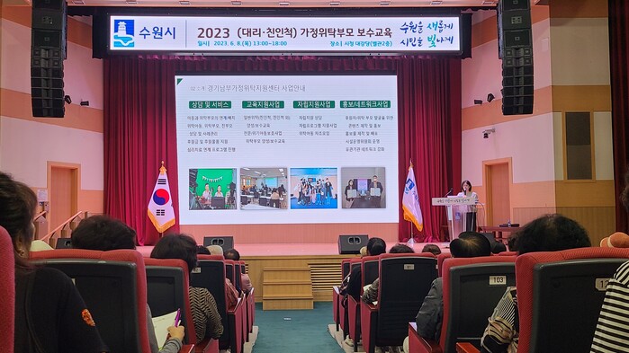 수원시가 8일 시청 대강당에서 관내 대리·친인척 가정위탁 부모 100여 명을 대상으로 ‘2023년 일반가정위탁부모 보수교육’을 했다.