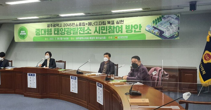 이번 토론회는 광주광역시의회가 광주광역시 2045탄소중립과 에너지자립을 위한 중·대형 태양광발전소 설립에 시민 참여를 모색하기 위해 개최했다.