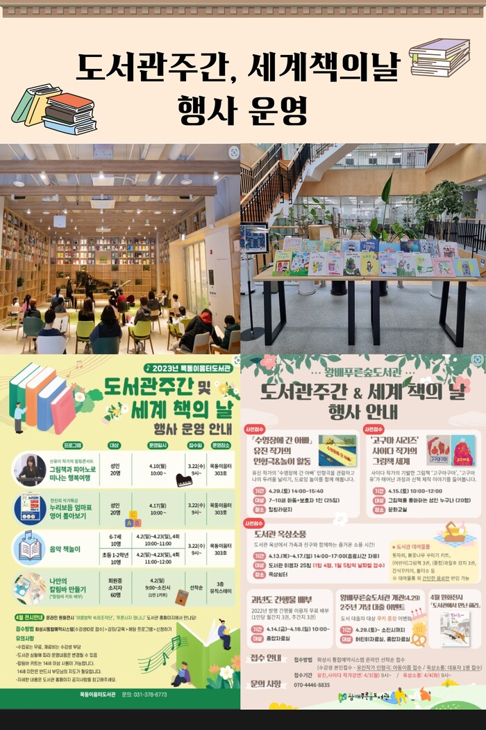이 밖에도 ▲대출자 포춘쿠키 증정(서연이음터도서관) ▲도서관 삼행시 짓기 대회(송린이음터도서관) ▲독서통장배부(양감작은도서관) 등이 운영된다.