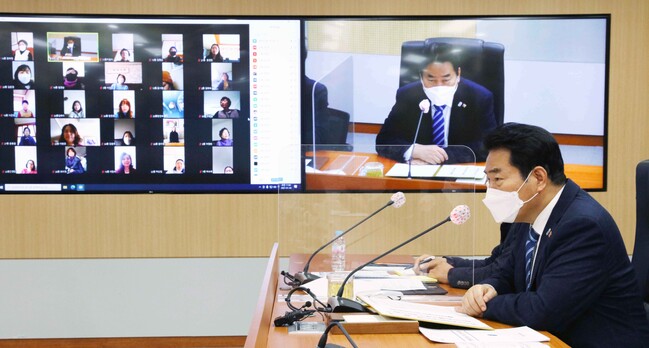 이날 용인시청 영상회의실에서 열린 회의에는 이영기 풍덕천2동장과 풍덕천2동 통장협의회 관계자 32명 등이 화상으로 참여해 백 시장과 자유롭게 소통하는 시간을 가졌다.