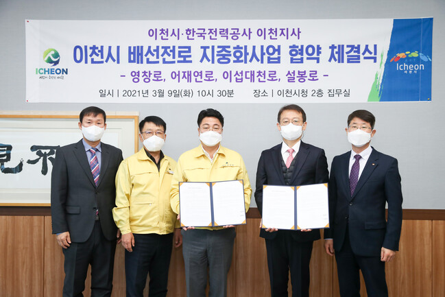 이천시(시장 엄태준)와 한국전력공사 이천지사는 9일 엄태준 이천시장과 정춘택 한국전력공사 이천지사장 등 관계자들이 참석한 가운데 이천시 시가지의 도시미관 정비를 위한 배전선로 지중화사업을 위한 협약을 체결했다.