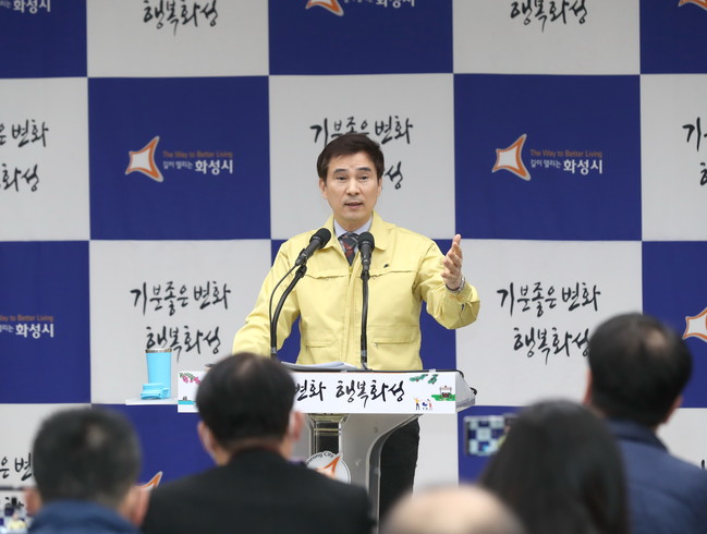 <사진/ 코로나19 추경 편성과 관련 언론브리핑을 하고 있는 서철모 화성시장>