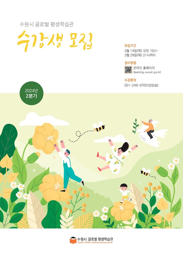 수원시글로벌평생학습관이 2024년 2분기 프로그램 수강생을 14일부터 모집한다. 2분기 강좌는 4월부터 6월까지 운영된다.