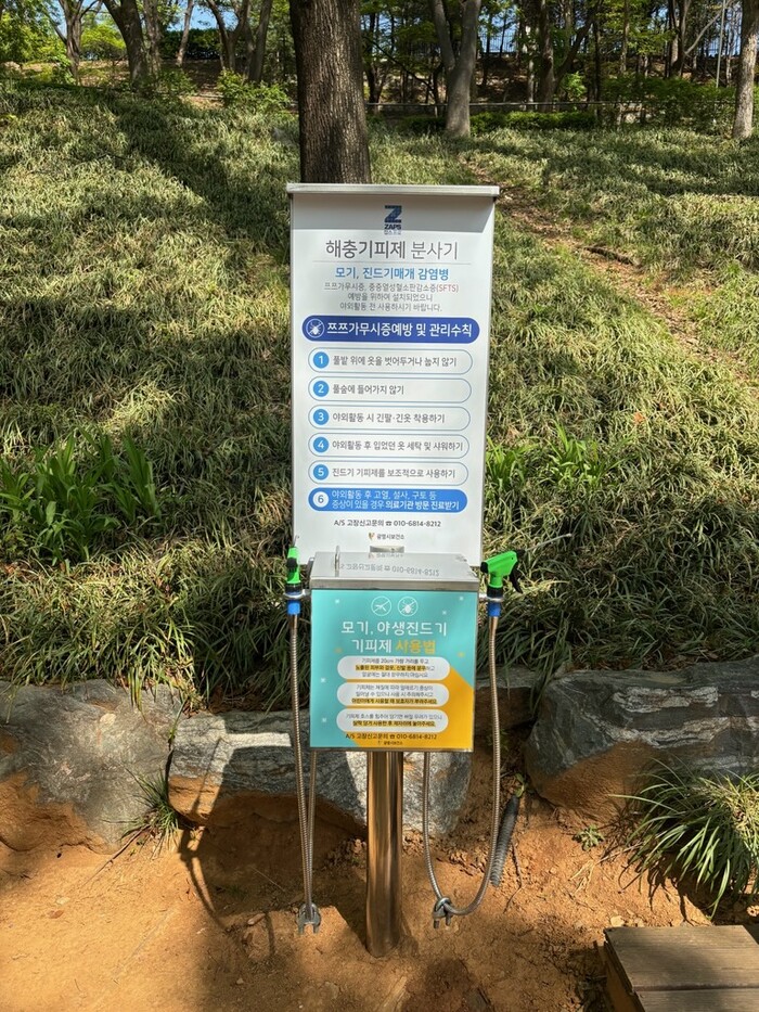 시는 구름산 등 시민들이 자주 이용하는 등산로 및 공원에 총 14대의 해충기피제함을 설치해 운영하고 있다. 올해 ▲안양천 ▲목감천 ▲현충근린공원 ▲철망산근린공원 ▲덕안근린공원 ▲광명동굴 누리길 등 총 6대를 신규 설치했다.