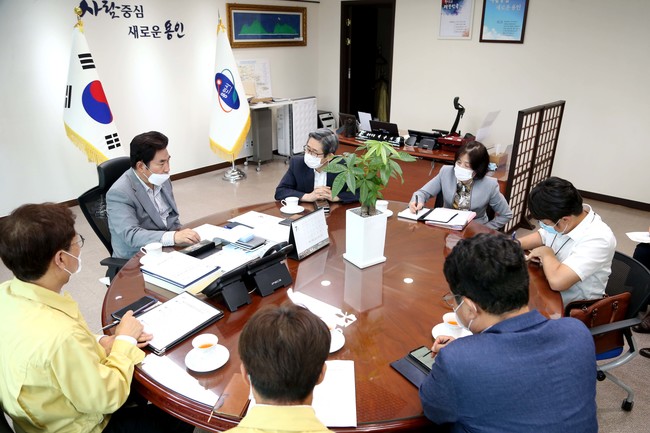 백군기 용인시장은 지난 14일 임시생활시설로 운영되고 있는 처인구 라마다호텔 및 골든튤립호텔 등의 대책을 논의하기 위해 시장실을 방문한 노홍인 중앙사고수습본부 총괄 책임관(보건복지부 보건의료정책실장) 등 관계자들에게 이같이 강조했다.
