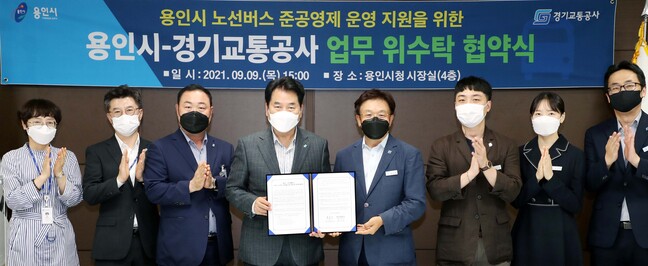 이날 협약식에는 백군기 용인시장, 정상균 경기교통공사 사장 등이 참석했다. 협약에 따라 시는 노선 신설·변경 등 큰 틀에서 관리.감독을 담당하고, 경기교통공사는 운송수입금 관리와 노선별 정산 등 운영 지원을 맡게 된다.