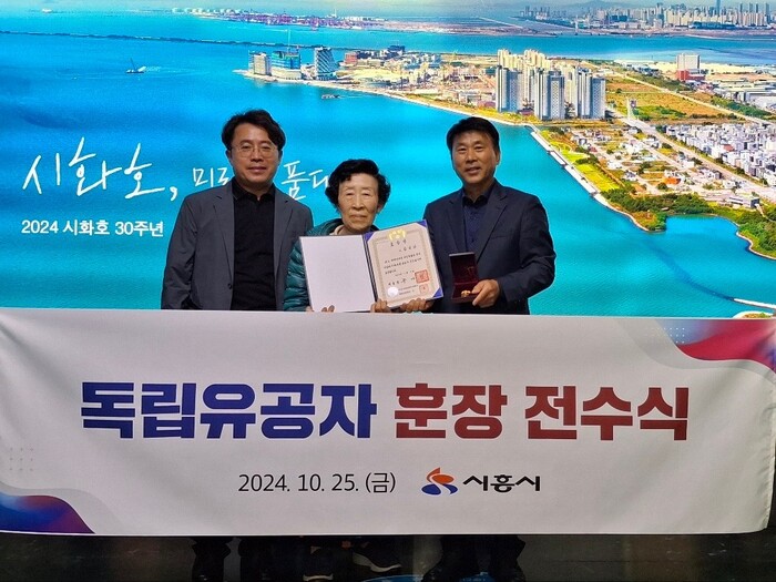 시흥시(시장 임병택)는 지난 25일 시청 복지국장실에서 독립유공자 포상 전수식을 열고, 2019년에 추서된 고(故) 김금남 독립지사의 대통령 표창을 유가족에게 전달했다.