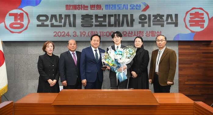 오산시(시장 이권재)는 지난 3월 19일 시청 상황실에서 TV조선 미스터트롯 시즌2에서 최종 眞을 수상한 트롯가수 안성훈을 오산시 홍보대사로 위촉했다고 밝혔다.