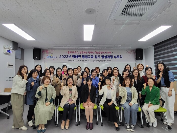 화성시(시장 정명근)가 3일, 화성시민대학에서 ‘화성시 장애인 평생교육 강사 양성과정 수료식’을 개최했다.