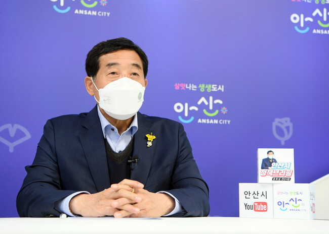 사진/윤화섭 시장 “안산시 상호문화 특례시 승격 추진”(유튜브 브리핑 촬영 모습)(사진제공=안산시)