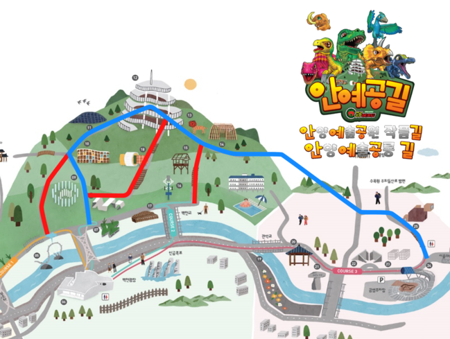 작품길 ‘안예공길’은 안양예술공원 작품길을 줄인 말이다. 이 구간에는 25개의 공공예술작품이 소재해 있다.
