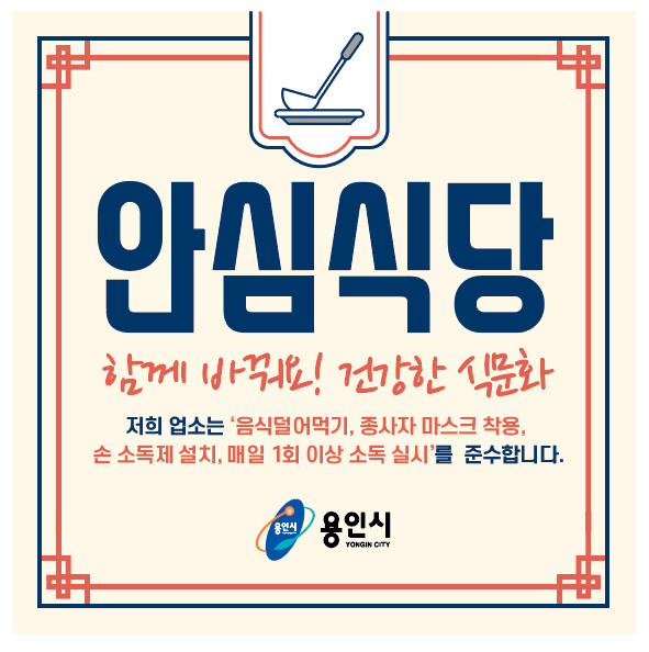 용인시는 코로나19 감염으로부터 시민들이 안심하고 이용할 수 있는 ‘안심식당’ 102곳을 오는 6월 30일까지 모집한다.