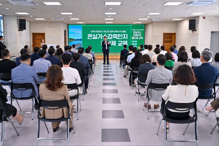 [양평=로컬라이프] 송준형 기자 = 전진선 양평군수는 30일, 공직자들과 함께 ‘온실가스 감축인지 예산제’ 교육을 진행했다.
