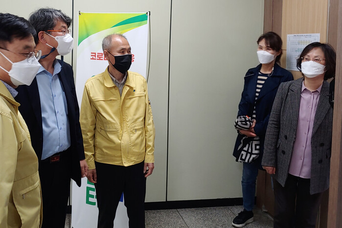 유문종 수원시 제2부시장이 21일 역학조사센터를 방문해 수원시 코로나19 확진자 역학조사 지원 업무를 하는 중앙부처 파견인력을 격려했다.