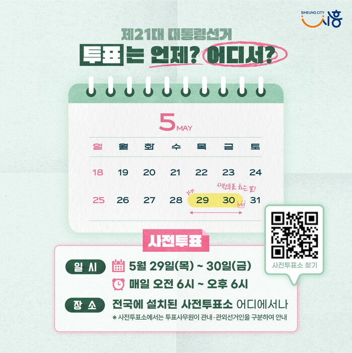 [시흥=로컬라이프] 송준형 기자 = 시흥시는 27일, 공식 페이스북을 통해 제21대 대통령선거 당신의 한 표가 대한민국을 만든다고 강조했다.