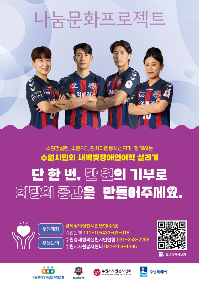 사진/시민구단인 수원FC와 수원FC위민 선수들이 참여한 수원새벽빛 장애인야학 살리기 포스터.(수원시 제공)