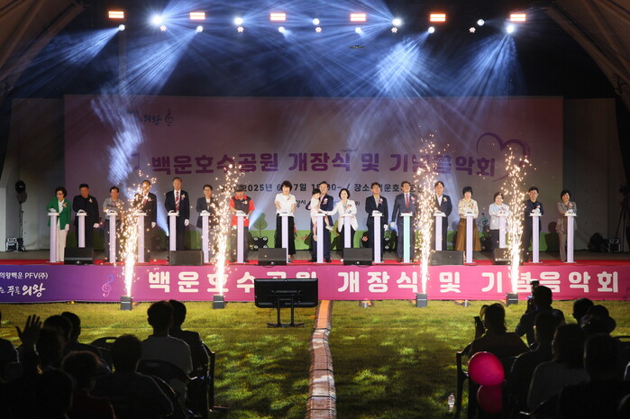 백운밸리 도시개발사업 시행자인 백운PFV(주) 주관으로 개최된 이번 개장식 및 기념음악회에는 김성제 의왕시장, 김학기 의왕시의회 의장을 비롯한 시·도의원, 공사 관계자와 지역주민 등 2,500여명이 참석한 가운데 진행됐다.