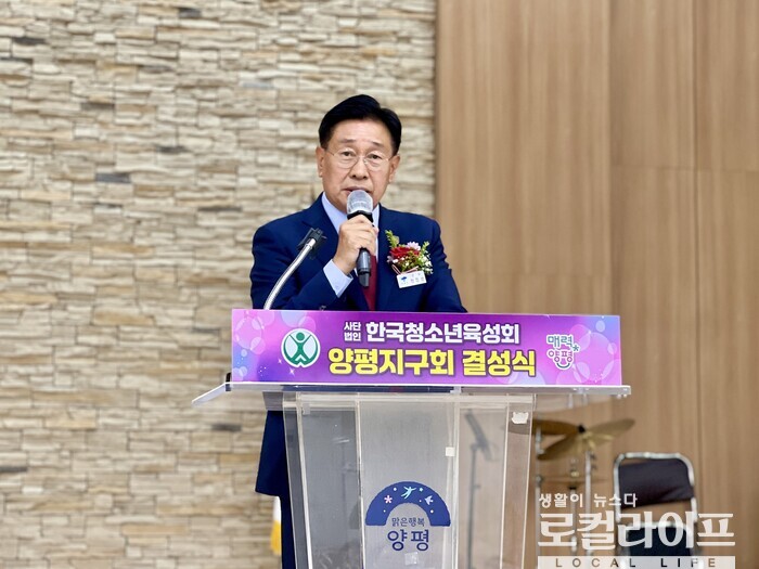 | ▲ 전진선 양평군수가 ‘(사)한국청소년육성회 양평지구회 결성식’에 참석해 축사를 하고 있다. (사진출처=전진선 페이스북) |
