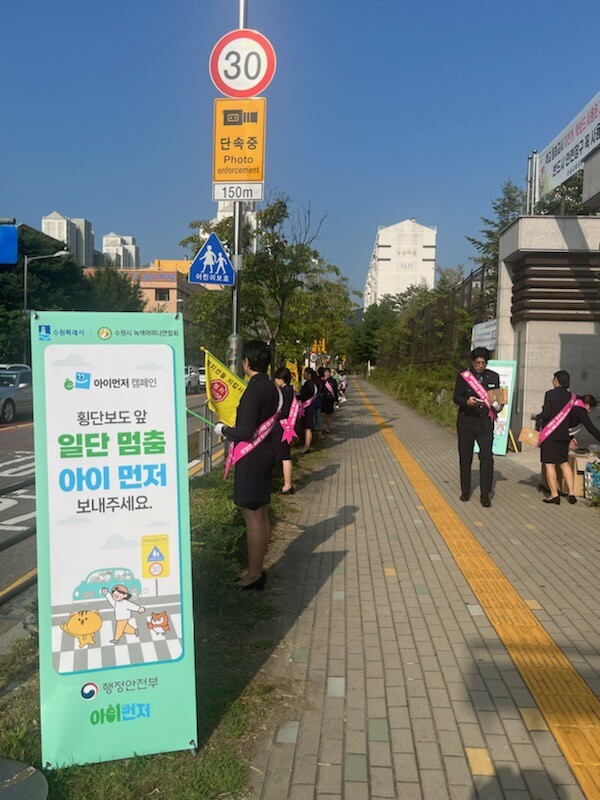 수원시 관계자는 “운전자는 어린이 보호구역 횡단보도에서 일단 멈추고, 보행하는 아이들이 안전하게 길을 건널 수 있도록 배려하는 운전을 해 달라”며 “운전자들이 어린이 보호구역에서 더 주의하고, 아이들의 안전을 최우선으로 생각하는 교통문화가 정착되길 바란다”고 말했다.