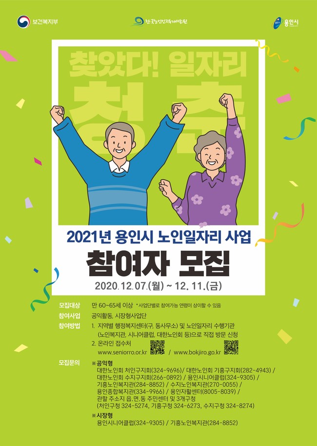 2021년 노인일자리 참여자 모집 포스터<용인시청 제공>