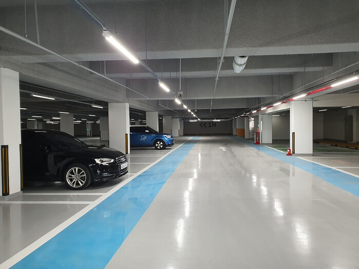 지하 주차장 진출입구에는 물막이벽을 설치해 집중호우 시 빗물이 주차장으로 유입되는 것을 차단하여 주차된 차량의 침수를 사전에 방지한다. 또한 전기차 주차구역(6면)에는 화재시 확산 방지를 위해 방화스크린셔터 설치 및 화재 초기진압을 위해 질식 소화포를 구비했다.