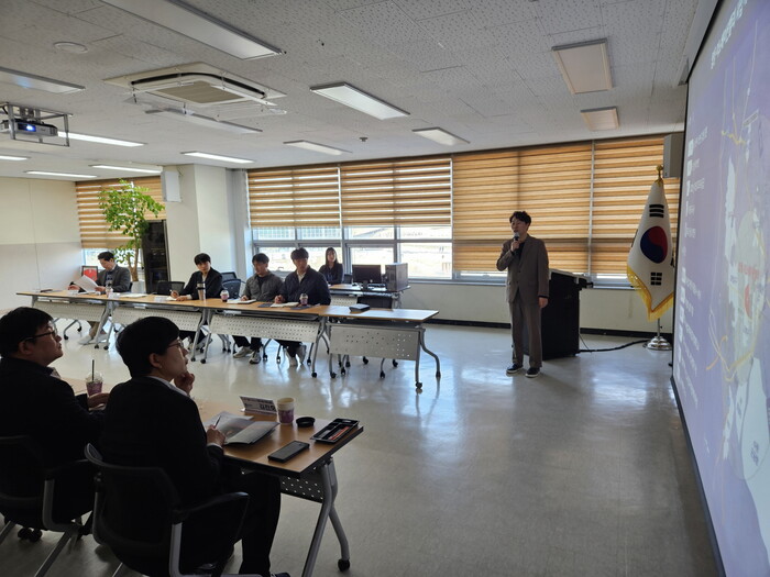 사진/수원도시공사 관계자가 탑동이노베이션밸리 사업을 설명하고 있다.(사진제공=수원시)