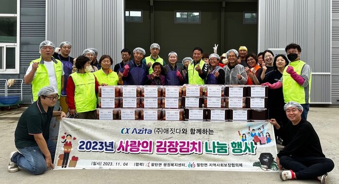 4일 화성시 팔탄면 소재 사회적 기업 ㈜애짓다가 팔탄면 취약계층과 따뜻한 온정을 나누고자 직원들과 함께 ‘2023년 김장김치 나눔봉사’를 실천했다.