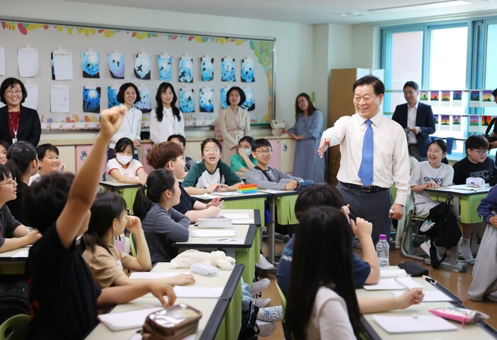 이날 박 시장은 5학년 2반 학생을 대상으로 ‘나의 꿈·나의 미래’를 주제로 진로 특강을 진행했다. 배움의 즐거움과 직업의 가치, 진정한 행복의 의미를 나누며 학생들과 소통하는 시간을 가졌다.