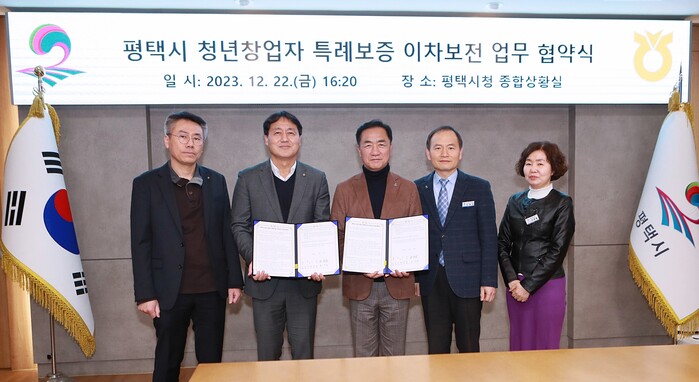 평택시(시장 정장선)는 지난 22일 시청 종합상황실에서 NH농협은행 평택시지부와 청년 창업자의 대출이자 부담을 줄이기 위해 ‘평택시 청년창업자 특례보증 이차보전 지원사업’ 협약을 체결했다.