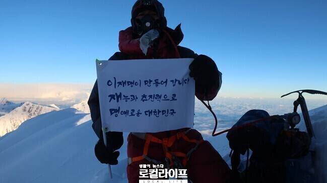 [로컬라이프] 송준형 기자 = 세계 7위봉인 히말라야 ‘다울라기리’ 등정에 성공한 ‘충북 히말라야 14좌 원정대’가 해발 8167m 정상에서 전한 이재명 더불어민주당 대선 경선 후보에 대한 지지 메시지가 인터넷을 중심으로 화제다.