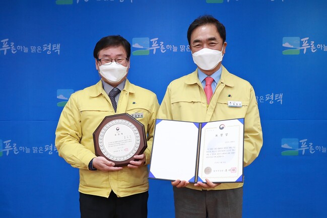 사진/ (왼쪽부터) 예창섭 평택시부시장, 정장선 평택시장(평택시청 제공)