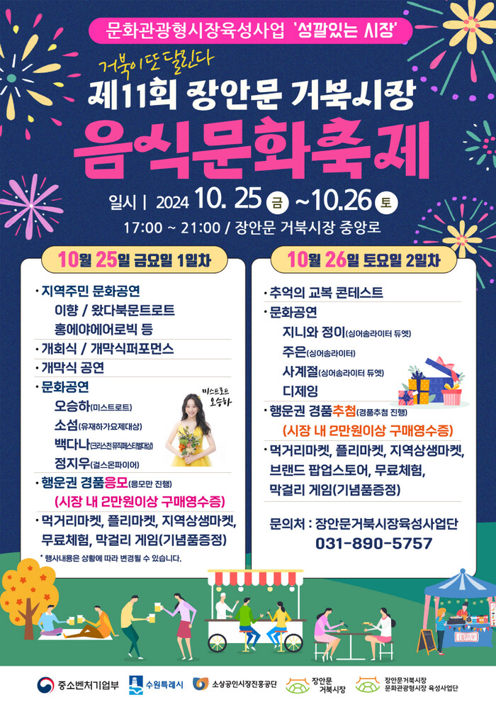 수원시 관계자는 “장안문거북시장이 가진 고유의 매력을 널리 알리고, 전통시장에 활력을 불어넣는 행사”라며 “다양한 먹거리와 체험을 준비했으니 많은 시민이 함께 즐기길 바란다”라고 말했다.