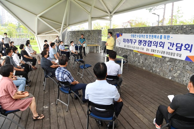 [로컬라이프] 김상호 하남시장은 지난 14일 미사지구 망월천 수질개선을 위해 지역 주민들과의 간담회에 참석, 망월천 수질 개선을 위해 적극 나설 것이라고 밝혔다.