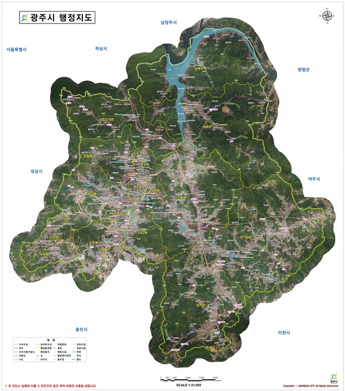 광주시 전자 행정지도는 광주시 홈페이지(http://www.gjcity.go.kr)에서 광주시 전역 행정지도와 16개 읍면동별로 구분된 형태로 서비스하고 있으며 행정지도 열람은 물론 특별한 제약 없이 시민들이 활용할 수 있게 파일형태로도 제공한다.