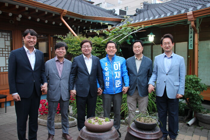 이재준 더불어민주당 수원시장 후보의 승리를 위해 5인 경선체제에서 경쟁했던 예비 후보들이 하나로 뭉쳤다.
