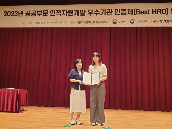 인적자원개발 우수기관 인증은 능력 중심의 인재 채용과 지속적인 교육훈련 등으로 인적자원을 체계적으로 육성하는 기관을 선발하는 제도이다. 인사관리체계 수립 및 채용·인사평가·배치·승진 등 인사제도의 운용과 교육훈련 참여도 및 투자 정도 등을 서류와 현장심사로 평가한다.