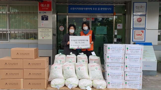 수원시농업기술센터가 도시생태농업으로 생산한 작물을 취약계층에게 기부했다.