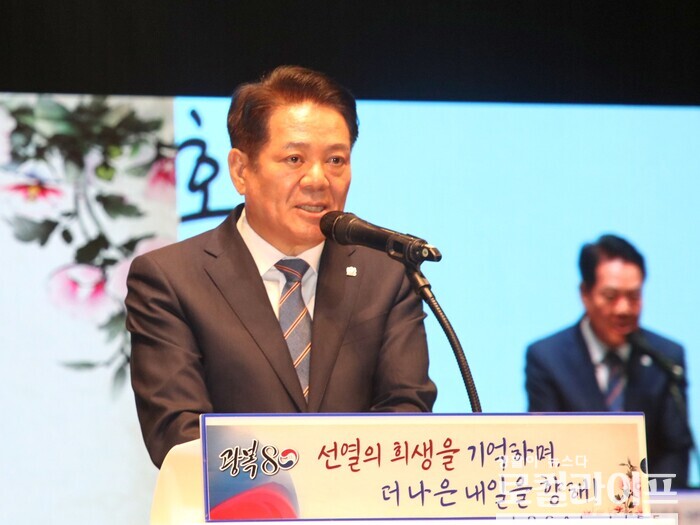 | ▲ 최대호 안양시장이 ‘광복 80주년 경축 행사’에 참석해 기념사를 하고 있다. (사진출처=최대호 페이스북) |