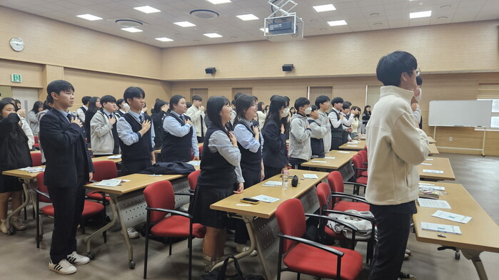 사진/수원시가 ‘2025년 학교 4-H 신입회원 입단식’을 열고 있다.(사진제공=수원시)