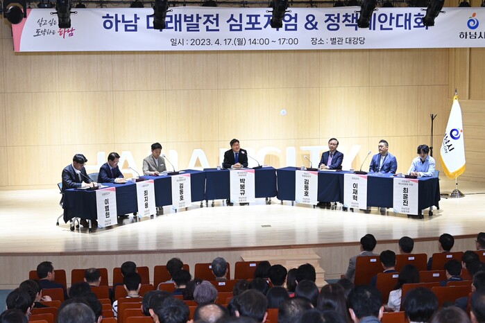 하남시(시장 이현재)는 17일 시청 대강당에서 분야별 전문가의 정책 제안으로 자족도시 하남으로 발전하기 위한 전략을 모색하는 ‘하남 미래발전 심포지엄’과 다양한 분야 시민 목소리를 반영해 특화정책을 발굴하는 ‘정책제안대회’를 개최했다고 밝혔다.