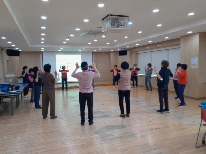 사진/어르신들이 ‘몸튼튼 교실’에서 체조를 하고 있다(수원시 제공)