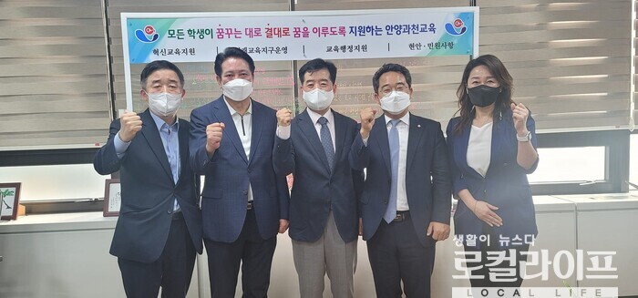 이어 “안양·과천 교육지원청 김경관 교육장, 이재정·강득구·민병덕 국회의원과 귀한 시간을 가졌다”며 “교육은 미래 예측이 가능해야 하기에 일관성 있게 안양시가 추진해왔던 교육정책과 현안이 이어져야 한다는 의견을 함께 나누었다”고 전했다.