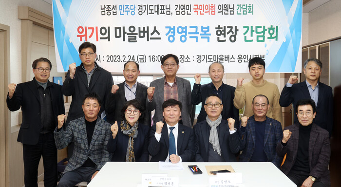 경기도의회 더불어민주당 남종섭 대표의원(용인3)은 24일(금) 경기도 마을버스 용인시지부 사무실에서 대·외적인 경제여건 악화로 어려움을 겪고 있는 마을버스 경영정상화를 위한 정담회를 개최했다.