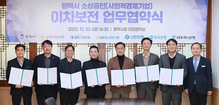 평택시(시장 정장선)는 지난 22일 관내 소상공인들의 자금난 해소와 대출이자에 대한 부담을 완화하기 위해 관내 6개 금융기관과 소상공인(사회적경제기업) 특례보증 이차보전 업무 협약을 체결했다고 밝혔다.